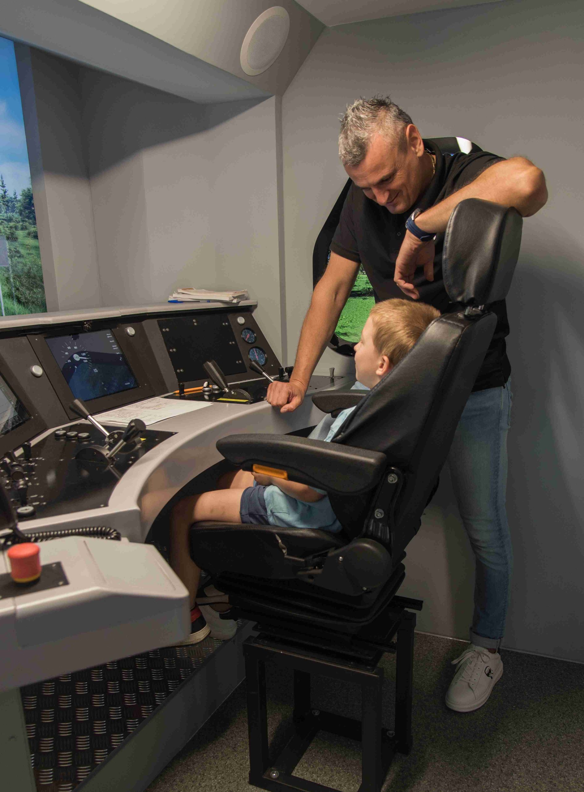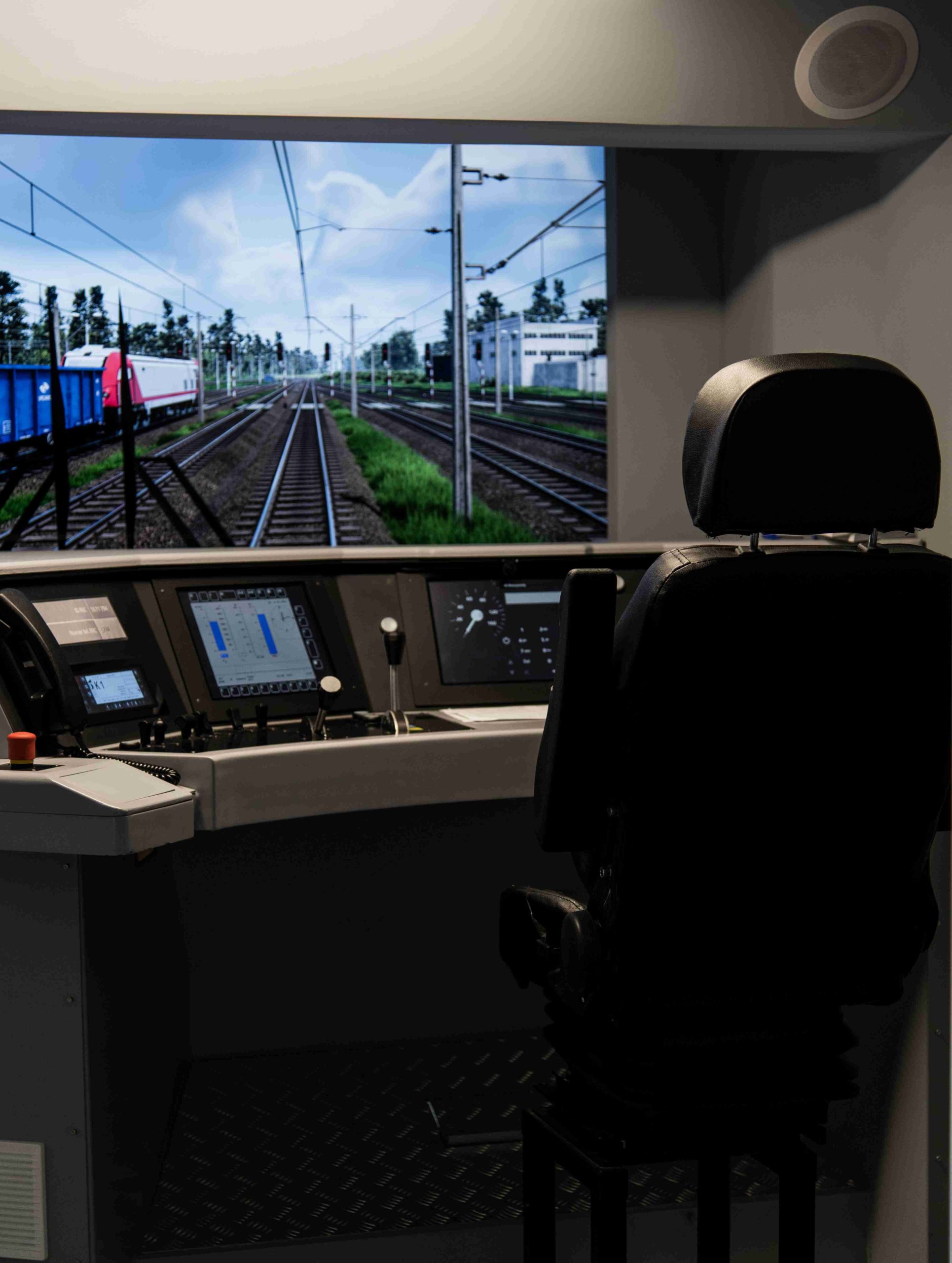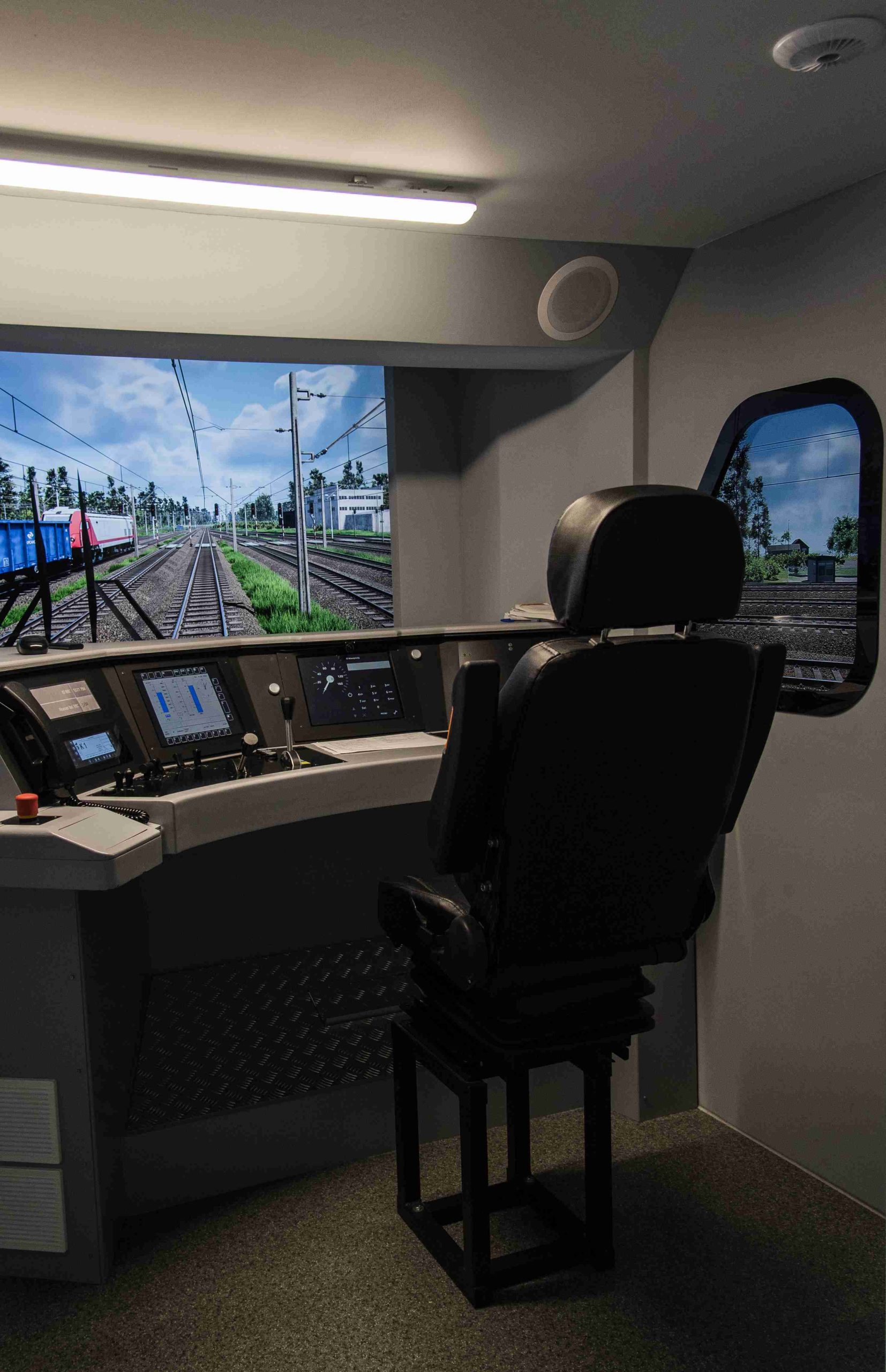Oferujemy szkolenia z użyciem symulatora pojazdu kolejowego, który powstał we współpracy z polskim producentem symulatorów oraz oprogramowania dla branży kolejowej. Nasz Symulator pociągu jest odwzorowaniem pełnowymiarowej kabiny lokomotywy Bombardier TRAXX, obejmuje fizyczne odwzorowanie urządzeń sterujących, łączności oraz automatyki bezpieczeństwa. Obraz wyświetlany jest na wielu ekranach o rozdzielczości 4K. Zaawansowane technicznie oprogramowanie symulacyjne zapewnia niespotykany dotąd realizm fizyki prowadzenia pojazdów, wysoką jakość grafiki oraz odwzorowania linii kolejowych. Kabinie naszego symulatora uczestnik szkolenia dosłownie czuje się, jakby kierował prawdziwym pociągiem.